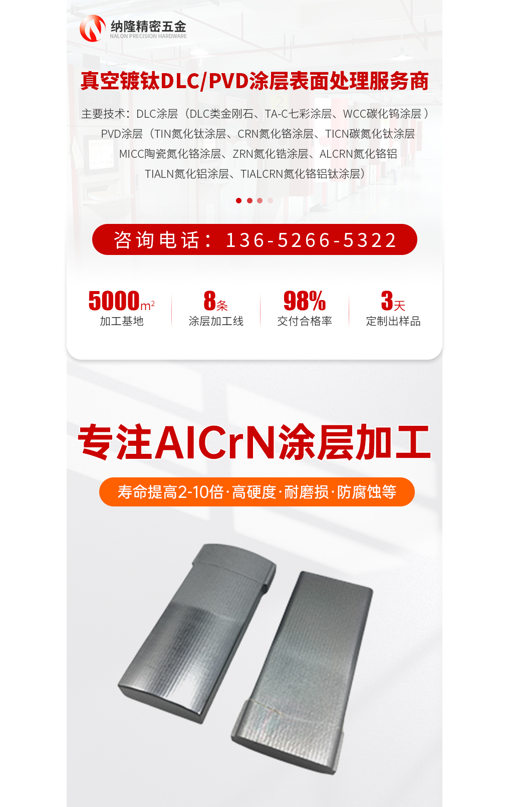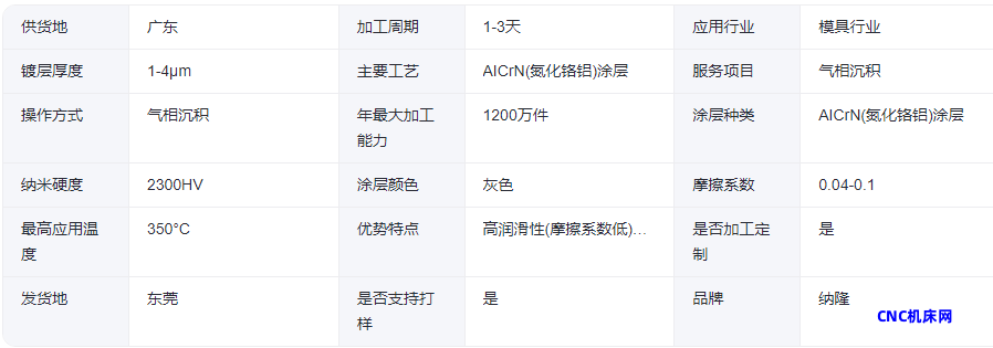本网页所展示的有关【耐磨自润滑DLC薄膜 高硬度不锈钢冲头镀AICrN(氮化铬铝)涂层 纳隆】的信息/图片/参数等由的会员【】提供,由CNC机床网会员【】自行对信息/图片/参数等的真实性、准确性和合法性负责,本平台(本网站)仅提供展示服务,请谨慎交易,因交易而产生的法律关系及法律纠纷由您自行协商解决,本平台(本网站)对此不承担任何责任。您在本网页可以浏览【耐磨自润滑DLC薄膜 高硬度不锈钢冲头镀AICrN(氮化铬铝)涂层 纳隆】有关的信息/图片/价格等及提供 【耐磨自润滑DLC薄膜 高硬度不锈钢冲头镀AICrN(氮化铬铝)涂层 纳隆】的商家公司简介、联系方式等信息。
