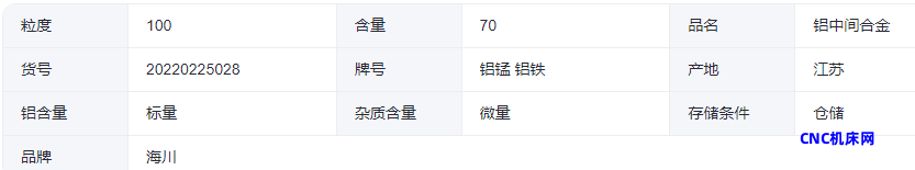 本网页所展示的有关【海川销售铝中间合金 铝锰30 铝铁50 铝锰铁合金 铸造块状 可零售】的信息/图片/参数等由的会员【】提供,由CNC机床网会员【】自行对信息/图片/参数等的真实性、准确性和合法性负责,本平台(本网站)仅提供展示服务,请谨慎交易,因交易而产生的法律关系及法律纠纷由您自行协商解决,本平台(本网站)对此不承担任何责任。您在本网页可以浏览【海川销售铝中间合金 铝锰30 铝铁50 铝锰铁合金 铸造块状 可零售】有关的信息/图片/价格等及提供 【海川销售铝中间合金 铝锰30 铝铁50 铝锰铁合金 铸造块状 可零售】的商家公司简介、联系方式等信息。
