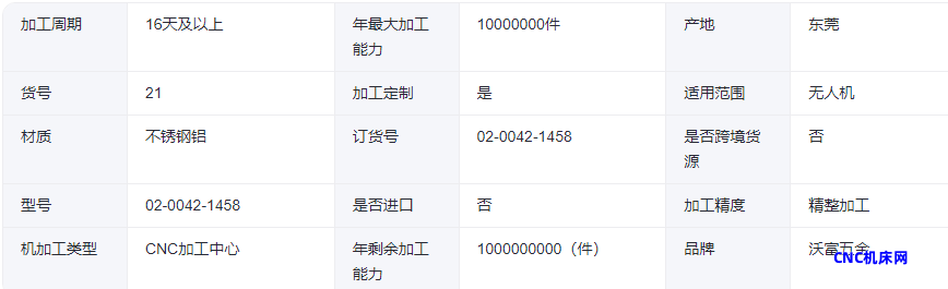 本网页所展示的有关【高精度机械加工 航空航天零件 无人机零配件加工 沃富五金定制】的信息/图片/参数等由的会员【】提供,由CNC机床网会员【】自行对信息/图片/参数等的真实性、准确性和合法性负责,本平台(本网站)仅提供展示服务,请谨慎交易,因交易而产生的法律关系及法律纠纷由您自行协商解决,本平台(本网站)对此不承担任何责任。您在本网页可以浏览【高精度机械加工 航空航天零件 无人机零配件加工 沃富五金定制】有关的信息/图片/价格等及提供 【高精度机械加工 航空航天零件 无人机零配件加工 沃富五金定制】的商家公司简介、联系方式等信息。