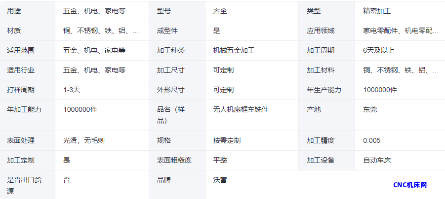 本网页所展示的有关【沃富无人机扇框车铣件自动精密车床加工高精度可定制】的信息/图片/参数等由的会员【】提供,由CNC机床网会员【】自行对信息/图片/参数等的真实性、准确性和合法性负责,本平台(本网站)仅提供展示服务,请谨慎交易,因交易而产生的法律关系及法律纠纷由您自行协商解决,本平台(本网站)对此不承担任何责任。您在本网页可以浏览【沃富无人机扇框车铣件自动精密车床加工高精度可定制】有关的信息/图片/价格等及提供 【沃富无人机扇框车铣件自动精密车床加工高精度可定制】的商家公司简介、联系方式等信息。