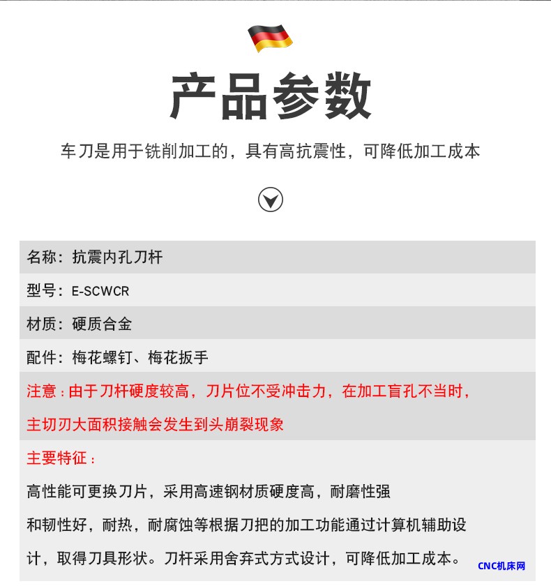 本网页所展示的有关【硬质合金镗孔SCWCR09钨钢抗震内冷刀杆出水车刀50度小内孔车刀杆】的信息/图片/参数等由的会员【】提供,由CNC机床网会员【】自行对信息/图片/参数等的真实性、准确性和合法性负责,本平台(本网站)仅提供展示服务,请谨慎交易,因交易而产生的法律关系及法律纠纷由您自行协商解决,本平台(本网站)对此不承担任何责任。您在本网页可以浏览【硬质合金镗孔SCWCR09钨钢抗震内冷刀杆出水车刀50度小内孔车刀杆】有关的信息/图片/价格等及提供 【硬质合金镗孔SCWCR09钨钢抗震内冷刀杆出水车刀50度小内孔车刀杆】的商家公司简介、联系方式等信息。