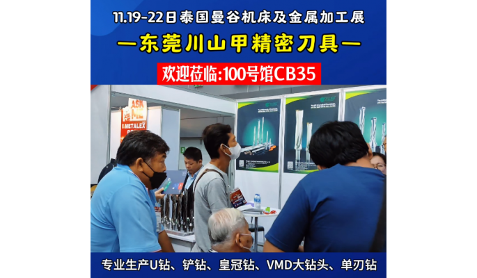东莞市川山甲精密刀具有限公司亮相泰国metaLEX机床展100号馆CB35,专注于孔加工刀具的生产和研发。目前主打产品有KS皇冠钻、铲钻、U钻、单刃钻、VMD大钻头、带定心钻头、组合钻等产品。规格齐全,性价比高,欢迎大家选购。#机加工#孔加工#开粗加工#深孔钻头#川山甲#皇冠钻#U钻#VMD大钻头#单刃钻#铲钻#零件加工#机加工#中国机床#中国刀具厂家#CNC刀具#泰国#泰国机床展#泰国metalex#中国人在泰国